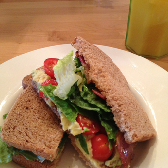 If you meet some resistance from your kids, deconstruct the sandwich. Let them eat the bacon as one item, the toast with a bit of butter and/or avocado shmeared on it, and the lettuce/tomato as a salad. Still won’t eat the lettuce and tomato? Stick them on a toothpick and make a salad kabob.