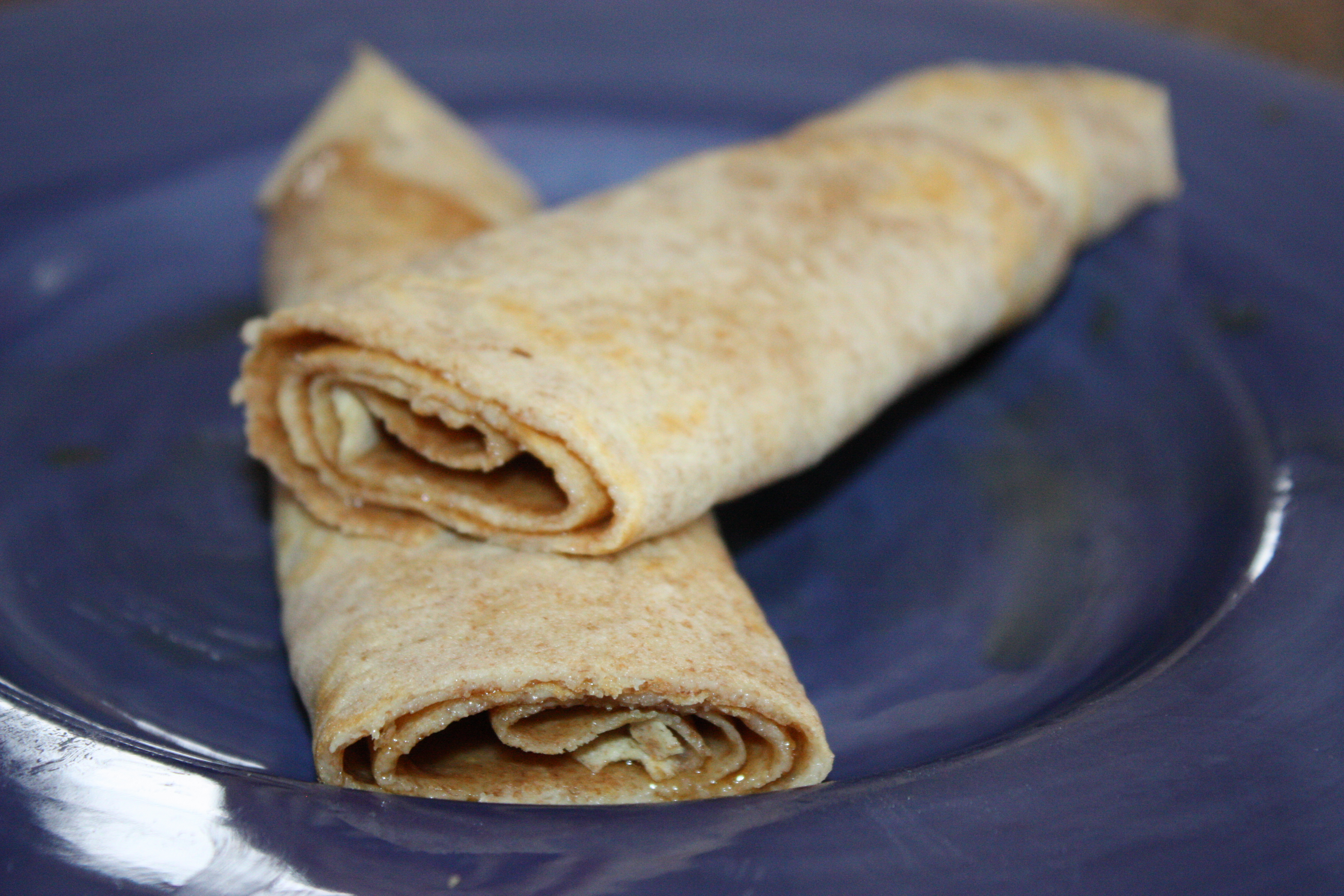 - If you’re serving straight to the plates and mouths of hungry 5- and 7-year olds like we were, spread a bit of butter on the pancake, pour on some 100% maple syrup, and roll it up!
